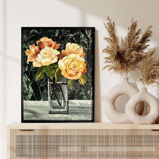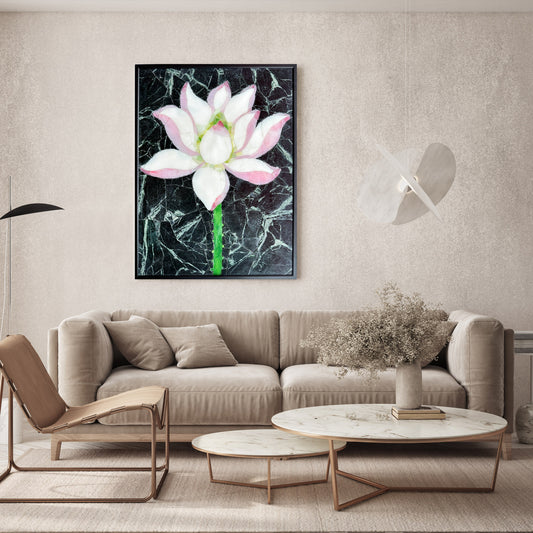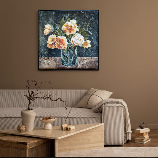 Flowers in Glass Marble&Jade Mosaic with Frame for Wall art