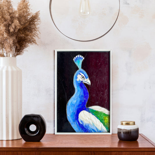Framed Peacock Mosaic Made of Glass Mosaic
