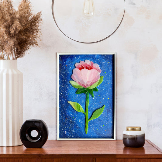 Rose on Dark Blue Sky Glass Arty Mosaic