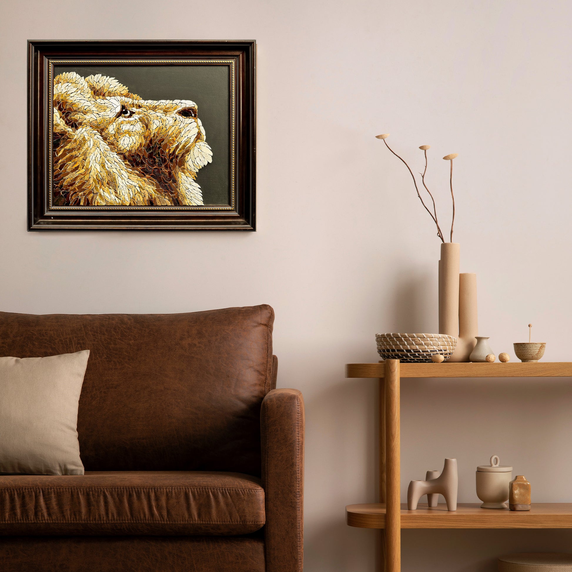 Framed Lion Porcelain Mosaic
