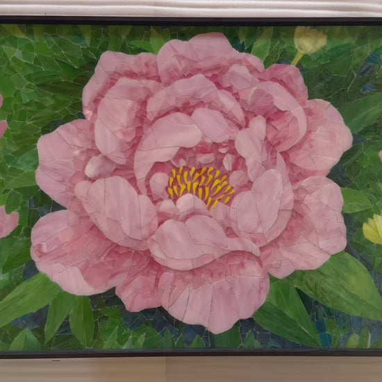 Experience tranquility and beauty with our Peace Peony Glass Mosaic. Made of delicate glass, this contemporary mosaic features a stunning flower design. Bring a sense of peace and harmony to any space with this unique piece. Add a touch of elegance and serenity to your home now!