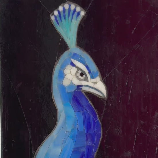 Experience awe-inspiring beauty with our Framed Peacock Mosaic. Handcrafted with delicate glass mosaic, it adds a touch of sophistication and elegance to any space. Each piece can be custom-made to suit your unique style. Bring your walls to life with this stunning mosaic mural!